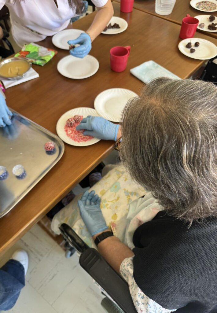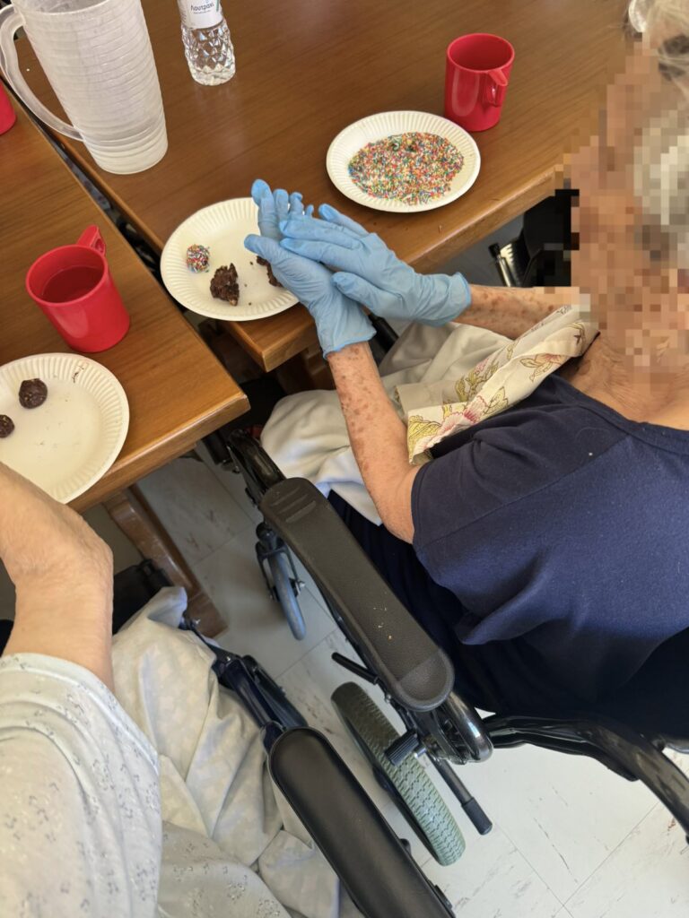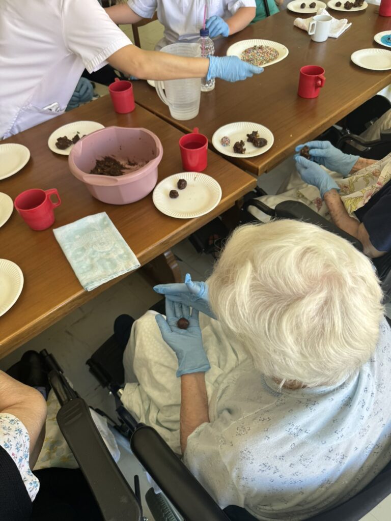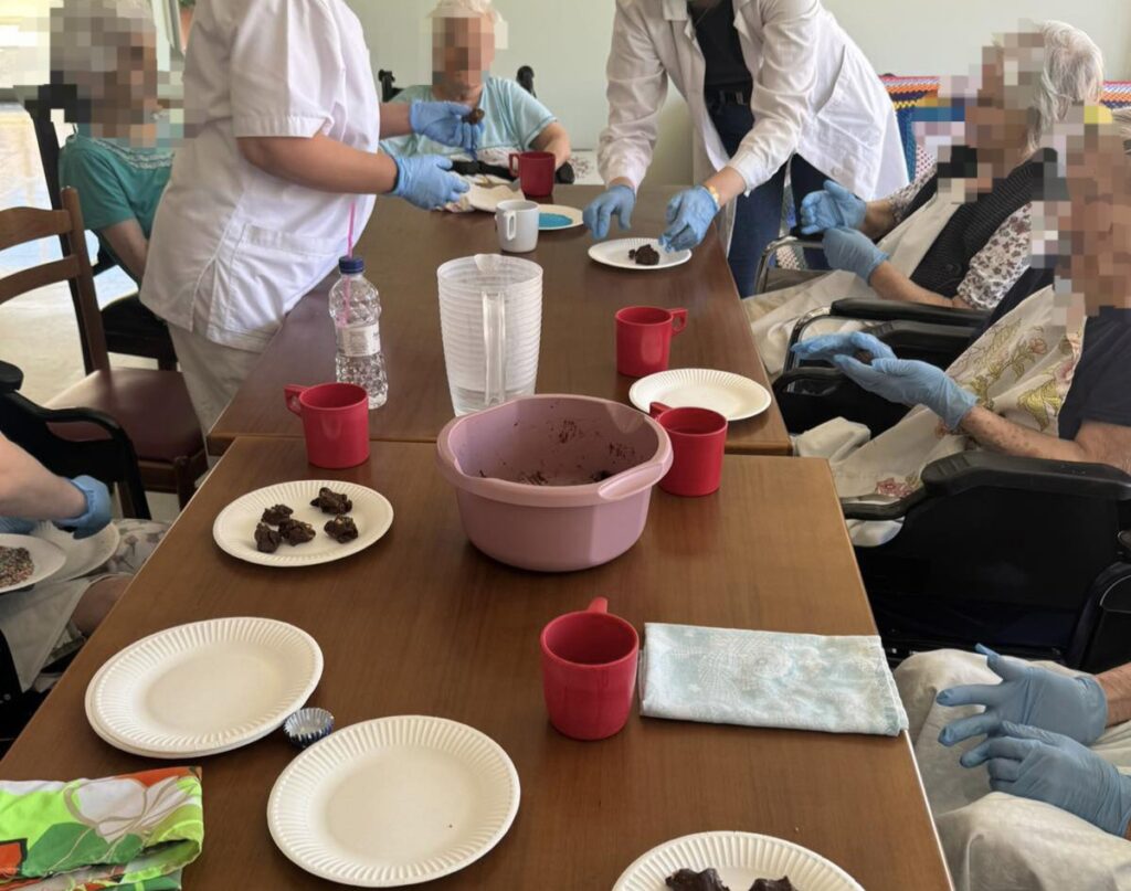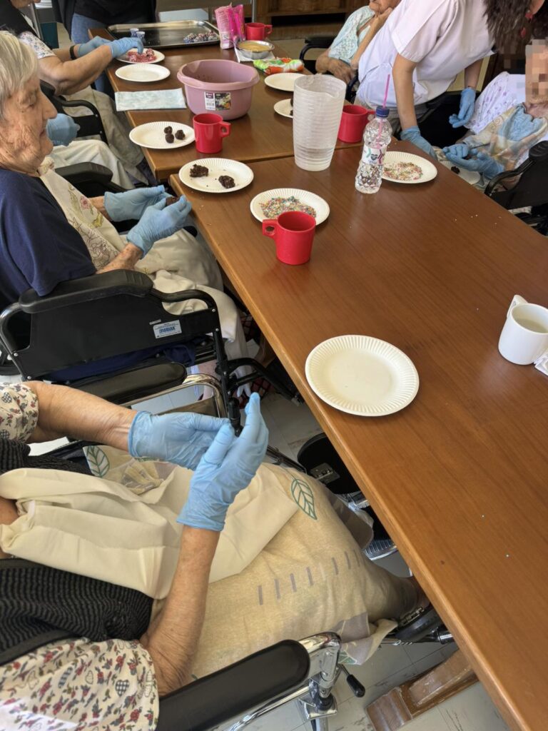 Σε ένα ζεστό και φιλόξενο περιβάλλον, οι τρόφιμοι του γηροκομείου απολαμβάνουν μία δημιουργική δραστηριότητα που τους φέρνει χαρά και ενθουσιασμό: τη δημιουργία λαχταριστών σοκολατένιων τρουφών!