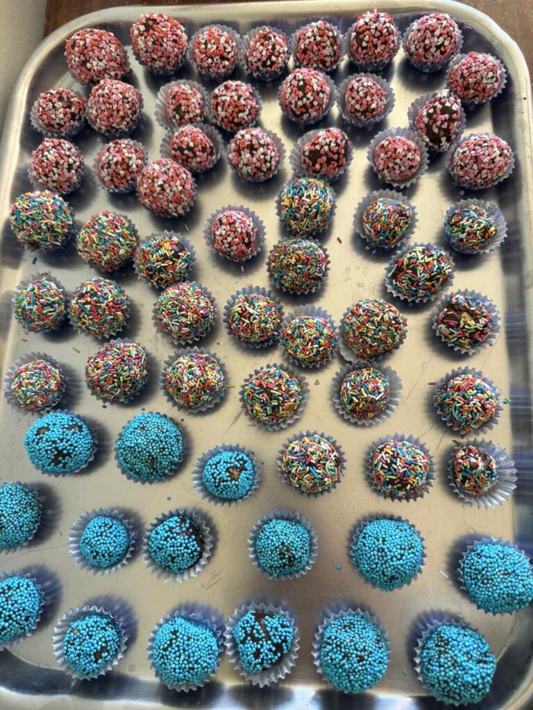 Το αποτέλεσμα της προσπάθειάς τους ήταν εντυπωσιακό. Ένας δίσκος γεμάτος με πολύχρωμες και λαχταριστές σοκολατένιες τρούφες που αποδεικνύουν ότι η ηλικία δεν είναι εμπόδιο στη δημιουργικότητα και την έκφραση.