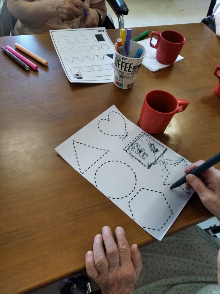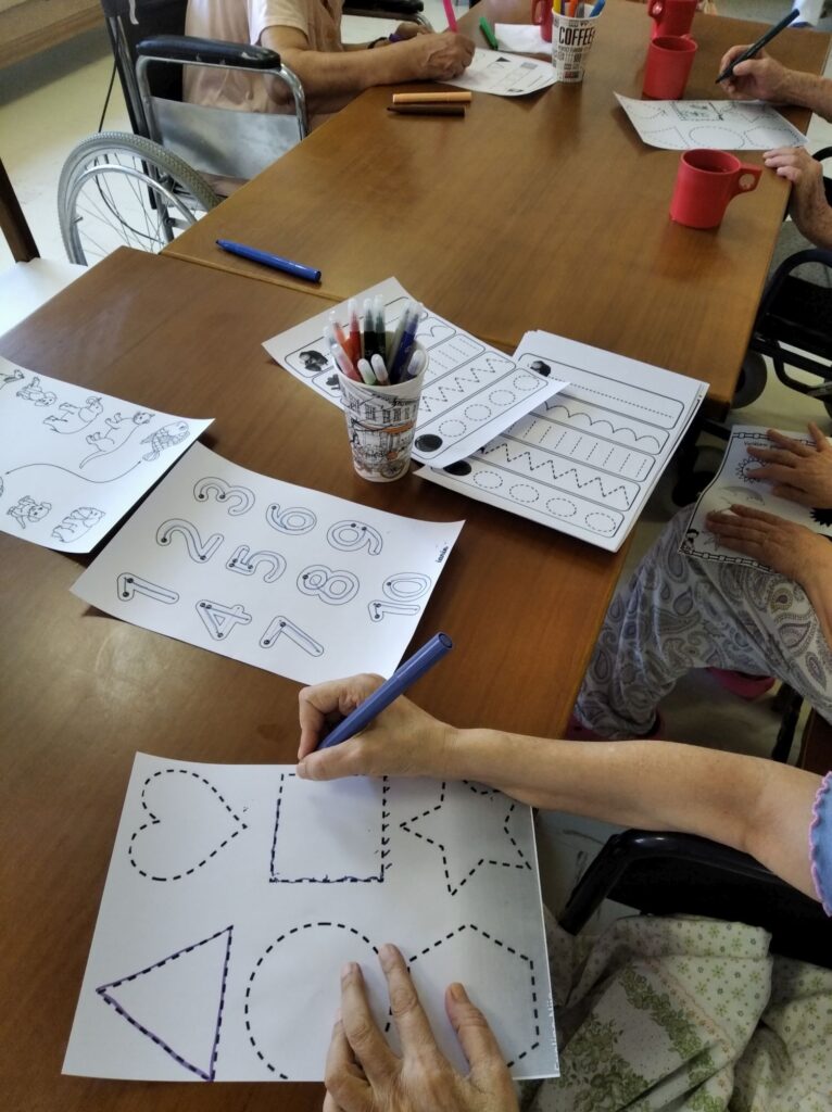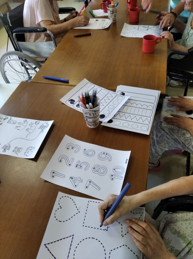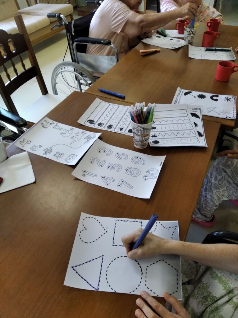 Οι ασκήσεις που επιλέγουμε περιλαμβάνουν τη χρήση χρωματιστών μαρκαδόρων και φύλλων εργασίας με σχήματα και αριθμούς, σχεδιασμένες για να εξασκούν τα χέρια τους και να τους κρατούν νοητικά ενεργούς. Ταυτόχρονα, αυτές οι δραστηριότητες προσφέρουν τη χαρά της δημιουργίας και της επιτυχίας.