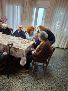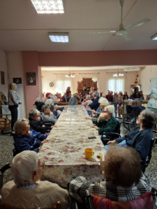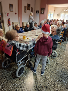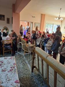 Οι μικροί επισκέπτες γέμισαν τον χώρο μας με παιδικές φωνές, χαμόγελα και ζωντάνια, ψάλλοντας τα κάλαντα και μεταφέροντας το αληθινό πνεύμα των ημερών. Οι φιλοξενούμενοί μας υποδέχθηκαν τα παιδιά με μεγάλη χαρά και συγκίνηση, συμμετέχοντας στη γιορτινή ατμόσφαιρα και απολαμβάνοντας αυτή τη μοναδική συνάντηση των γενεών.